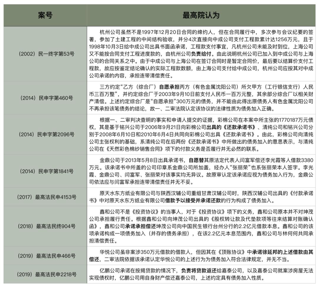 以上是本文以最高院裁判规则为基础,对债务加入部分问题的探讨,以期为明确债务加入的认定标准提供参考。